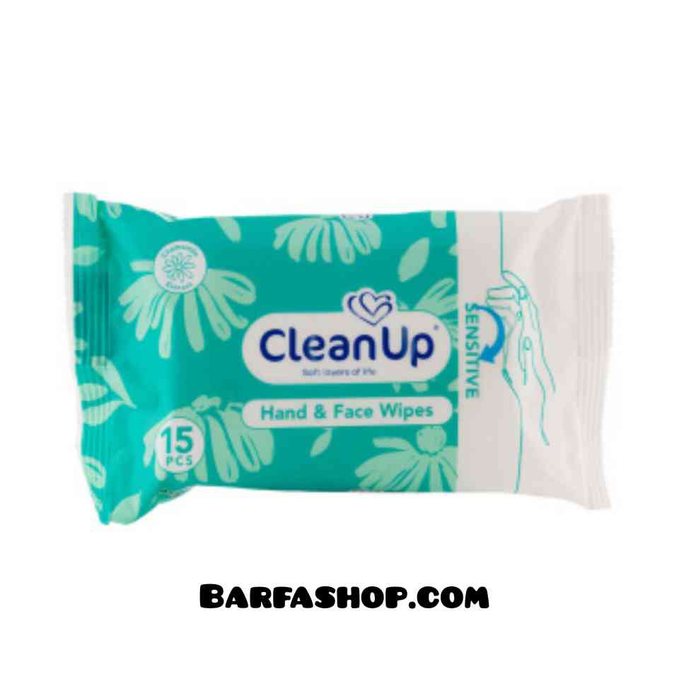 دستمال مرطوب پاککننده دست و صورت مخصوص پوست حساس Clean up :
